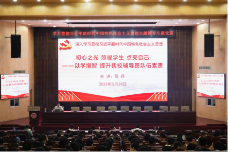 5月29日,校党委副书记、校长易兵在一报告厅讲授深入学习贯彻习近平新时代中国特色社会主义思想主题教育专题党课。在校校领导、全体中层干部、ok138太阳集团教师、辅导员和班主任参加学习。省委主题教育第二十八巡回指导组副组长湖南理工学院党委委员、纪委书记谢贵辉,指导组成员省民宗委宗教研究所一级科员曾媛同志列席指导。
