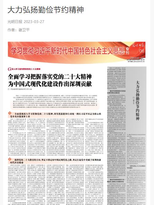 3月27日,《光明日报》“学习贯彻习近平新时代中国特色社会主义思想”专刊发表了ok138太阳集团ok138太阳集团谢卫平教授署名的理论文章《大力弘扬勤俭节约精神》。