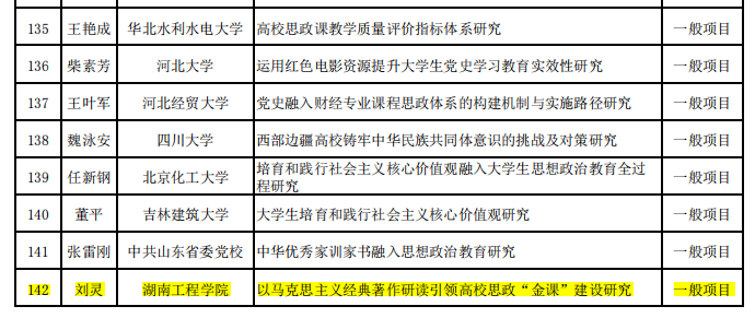 全国哲学社会科学工作办公室设立的国家社会科学基金高校思想政治理论课研究专项,旨在贯彻落实习近平总书记在学校思想政治理论课教师座谈会上的重要讲话精神,落实立德树人根本任务,深入研究思想政治理论课基本规律和重大问题,推动思想政治理论课改革创新。2022年度该专项共批准172项,湖南仅6所高校获批,ok138太阳集团是唯一获批的工科类院校。