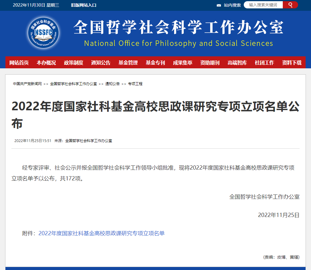近日,全国哲学社会科学工作办公室公布了2022年度国家社科基金高校思想政治理论课研究专项立项名单。ok138太阳集团刘灵博士申请的“以马克思主义经典著作研读引领高校思政‘金课’建设研究”获批国家社科基金思政专项一般项目。