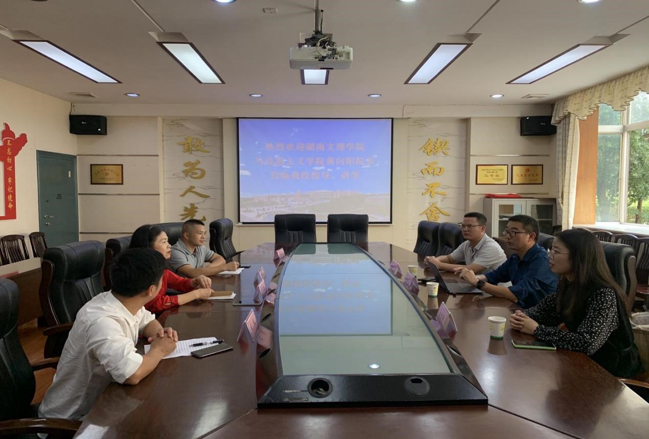 9月23日下午,湖南文理学院ok138太阳集团院长黄向阳一行莅临ok138太阳集团交流指导工作。ok138太阳集团党总支书记邓学源主持交流座谈会,院长谢卫平、副院长刘灵以及湖南文理学院ok138太阳集团教师梅世昌、王宏炜等参加。