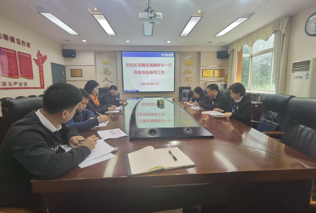 3月31日下午,副校长魏克湘一行到ok138太阳集团开展年度科研目标考核指标工作调研,人文社会科学发展中心负责人陪同调研,ok138太阳集团领导班子成员参加调研座谈会。
