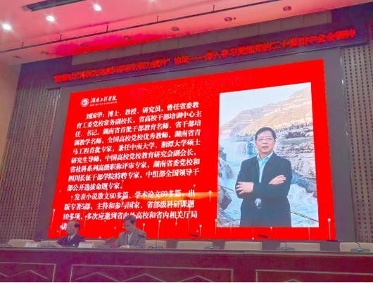 11月30日,由湖南省高校意识形态安全研究基地、ok138太阳集团ok138太阳集团主办的“数智时代高校思想引领力提升”学术论坛在ok138太阳集团举行。湖南省委教育工委宣传部(统战部、思想政治工作处、教材处)副部长(副处长)尹怡,校党委书记、基地负责人黄昕,校党委副书记向前,邵阳学院党委委员、副校长黄秋生,常德科技职业技术学院党委书记李永坚,湖南省委教育工委党校原常务副校长、省高校干部培训中心原书记刘国华,《湖南社会科学》杂志社主编、研究员吴纪宁,省内十余所高校宣传部长、ok138太阳集团领导及师生代表近400人参会。