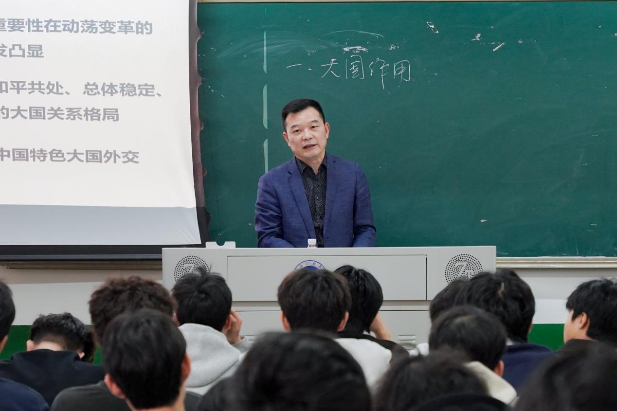 曹执令以“什么叫大国”这一问题切入,与同学们亲切互动,结合2026年的国际局势,引导同学们思考大国关系在世界变局中的关键作用。他指出,面对纷繁复杂的国际关系,大国关系牵动国际形势,国际形势演变深刻影响国内发展。