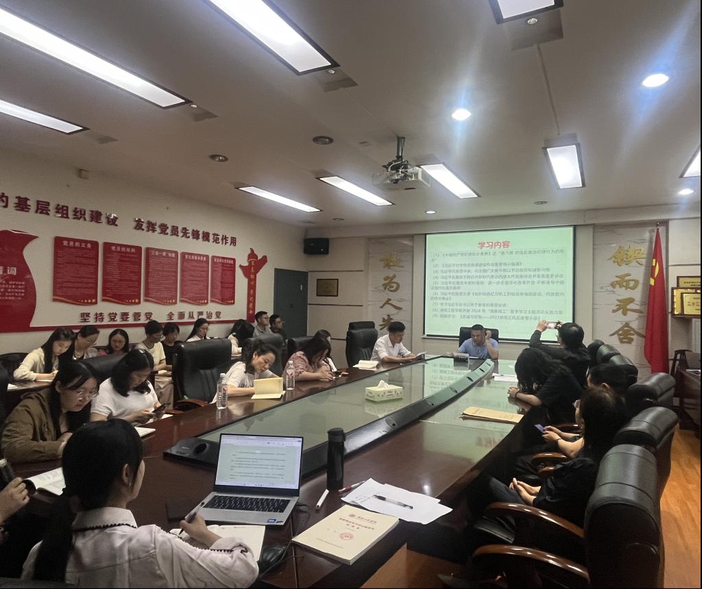 会议传达学习了ok138太阳集团“清廉湖工”夏季学习主题活动实施方案相关内容,与会人员围绕党纪学习教育、师德师风建设、廉洁自律等主题进行了研讨交流。