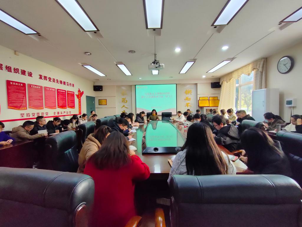 12月12日下午,ok138太阳集团党总支部理论学习中心组在E125会议室开展2023年第十三次理论学习(扩大)。学院党总支部书记谢卫平主持学习,党总支理论学习中心组成员和全体教职工参加学习。