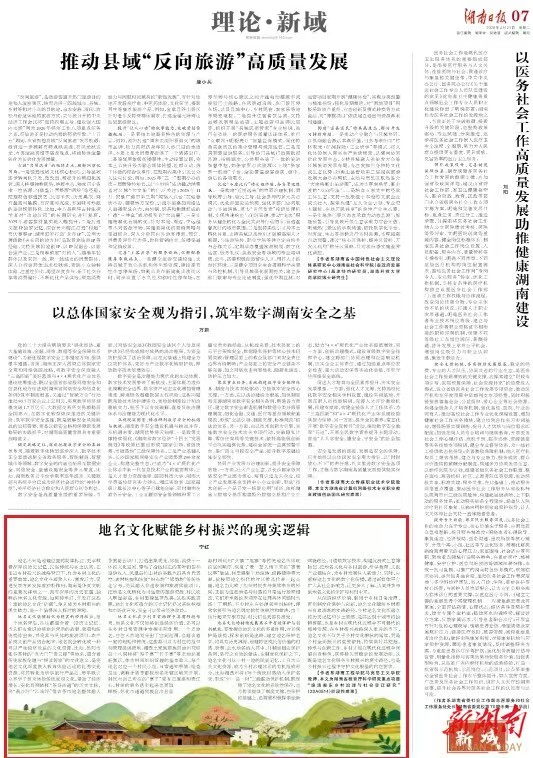 近日,ok138太阳集团ok138太阳集团李红博士在《湖南日报》理论版发表《地名文化赋能乡村振兴的理论逻辑与实践路径》一文。该文系其主持的湖南省教育厅科学研究重点项目“晚清湘东乡村治理与社会变迁研究”(22A0514)阶段性成果。