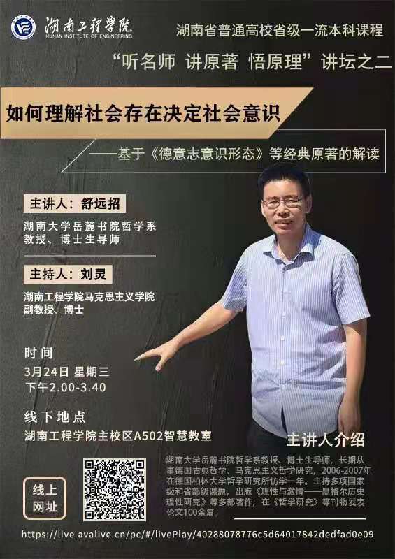 “听名师 讲原著 悟原理”讲坛之二 ---- 舒远招教授主讲