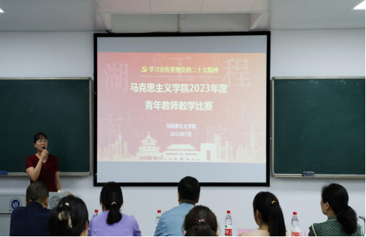 学院19名青年教师参加本次比赛。比赛重点检验参赛教师对所授课程的教学内容把握、教学方法运用以及课堂整体掌控能力。参赛教师根据自选参赛主题内容,进行现场授课。邀请教务处、高教研究中心、校教学督导团相关专家和湖南省普通高校教师课堂教学竞赛一等奖获得者担任本次比赛评委。