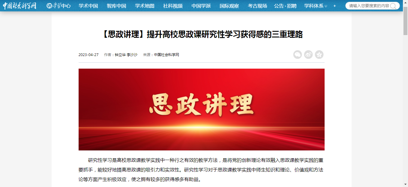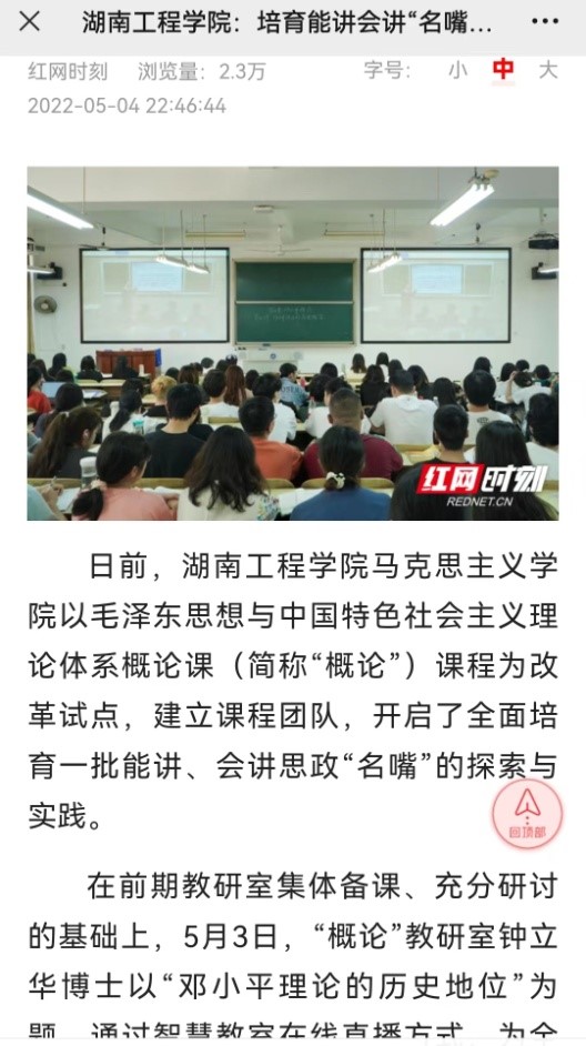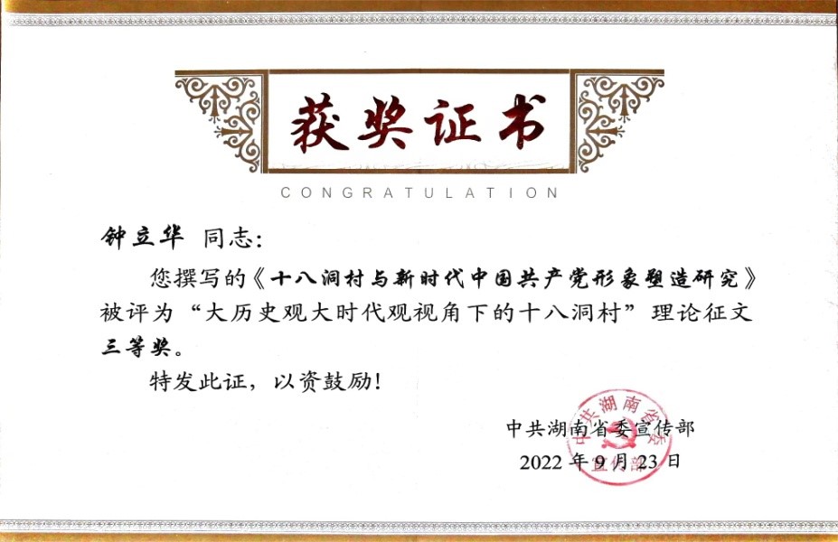 四、理论研究初显成效。该同志在从事思政课教学的同时,积极开展党的创新理论研究,参加理论宣讲、发表理论文章,较好地实现了教研相长。他担任ok138太阳集团第26期团校培训授课教师;担任湘潭市教育局党委第二十三期入党积极分子和发展对象培训班授课专家。入职以来发表文章10篇,出版合著1部,多篇理论文章在人民日报内刊《党建参阅》、学习强国、中国社会科学网、红网、云南网等平台发表或转载,获得湖南省委宣传部、组织部、湖南省高校思政研究会、ok138太阳集团、湘潭市委宣传部、湘潭市社科联、长沙市委宣传部等各级奖励十余项。