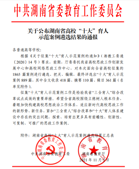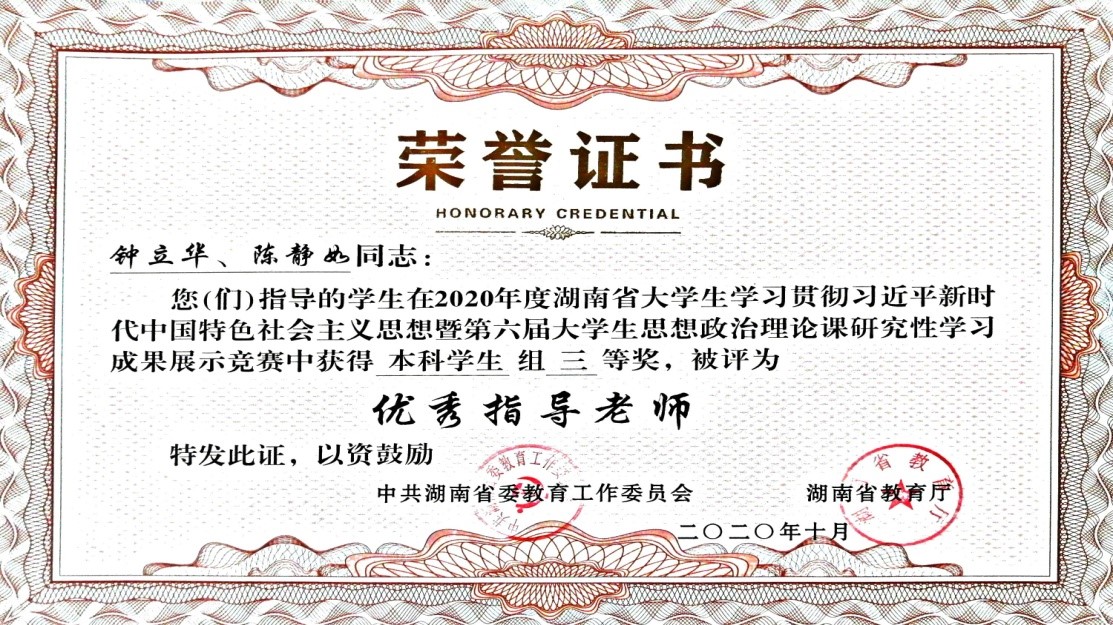 二、教学科研求真务实。该同志忠诚于党的教育事业,全身心投入到高校思政课ok138太阳集团之中,潜心钻研教学,认真备课,遵循科学创新的教育原则精心设计每一节课,注重提高教学实效。他每个学期担任6个合班的教学任务,教学效果良好,2021、2022年度教师课堂教学考核优秀。他主持各级科研和教研教改课题12项,指导学生参加ok138太阳集团思想政治理论课研究性学习成果展示竞赛,获第六届特等奖、第七届二等奖、第八届一等奖、第九届一等奖,2020、2021、2022、2023年均被评为“优秀指导老师”以及2020年省级三等奖优秀指导教师,入选湖南省高校“十大”育人示范案例(全文收录)。