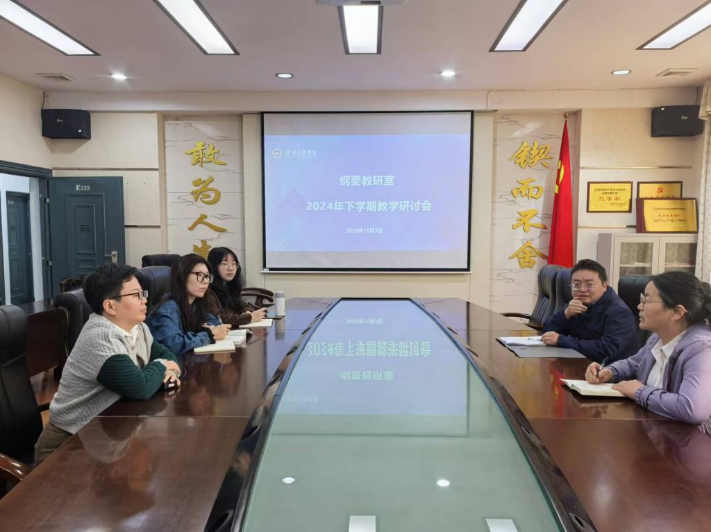 为进一步加强本科教育教学质量建设,提高教师队伍的专业水平与教学能力,11月7日ok138太阳集团纲要教研室在E125室举办了2024年下学期教学研讨会。教研室主任田小玲主持会议。本次会议以“深化教育改革,迎接本科教学评估”为主题,学院教学副院长汤菊平、纲要教研室全体教师参会。