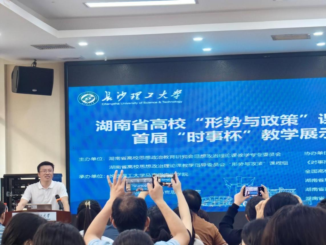 2024年6月2日,形势与政策教研室青年教师陈柳柯、罗铮、钟周丽嫄参加了由长沙理工大学承办的湖南高校“形势与政策”课研讨会暨首届“时事杯”教学展示决赛。省委教育工委宣传部部长、省教育厅思政处处长甘文波出席决赛并作开幕讲话。