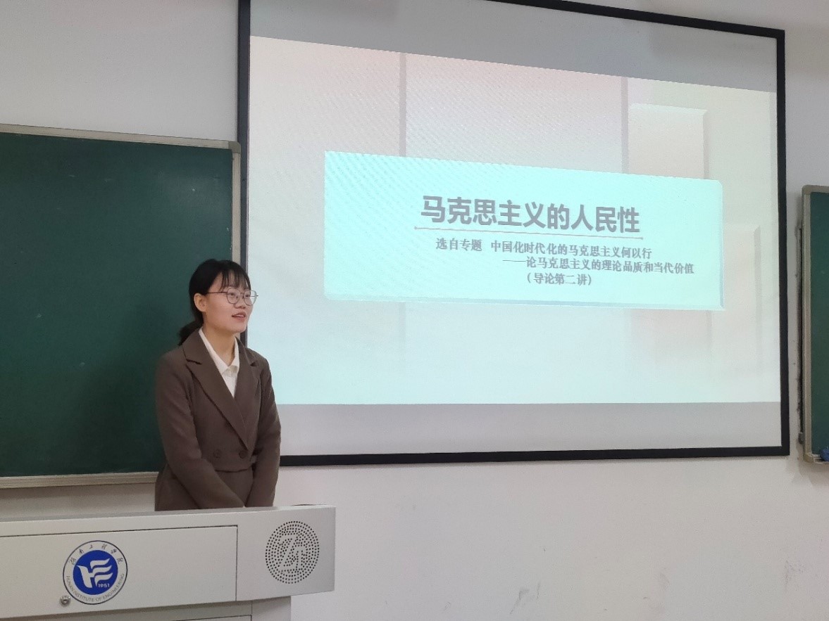 原理教研室青年教师李孟雨以《马克思主义的人民性》为主题进行教学展示,从“中国为什么选择了马克思主义?”“人民为什么选择了中国共产党?”两个问题导入,层层推进,深入分析了马克思主义的人民性。