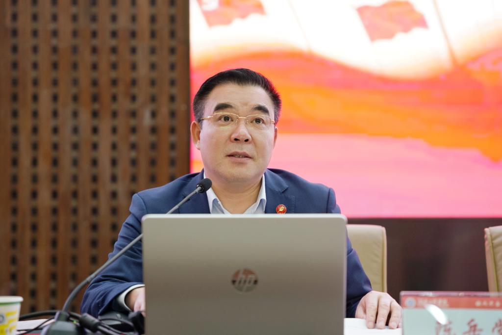 党委书记陈岳堂结合新闻视频资料和典型案例,为学生专题讲授《不断推进全体人民共同富裕》,从理解共同富裕的科学内涵、把握共同富裕的实践途径、认清共同富裕的未来征程三个方面进行了重点讲解。通过阐述实现共同富裕的长期性、艰巨性和复杂性,引导学生既要有信心,又要有耐心,充分认识我们所具有的优势条件、强大动力、光明前景,从而增强信心,持之以恒与全体人民共同奋斗,稳步朝着共同富裕迈进。