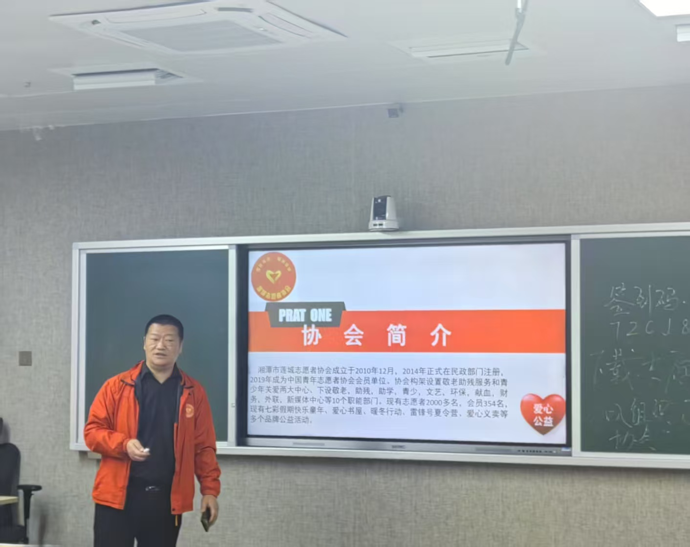 课堂上,杨波会长结合自身多年志愿服务经历,以“小行动汇聚大能量”为主线,通过多媒体课件、短视频和真实案例,生动阐释了志愿服务精神与社会主义核心价值观的紧密联系。他指出:“志愿服务不仅是助人,更是青年在实践中锤炼品格、坚定理想信念的重要途径。”围绕乡村振兴、生态保护、助贫助困等主题,杨会长分享了莲城志愿者协会开展的“爱心义卖”、“河小青”等品牌项目,并特别讲述了大学生志愿者在爱心课堂、脑瘫兄弟帮扶中的感人故事,引发学生强烈共鸣。