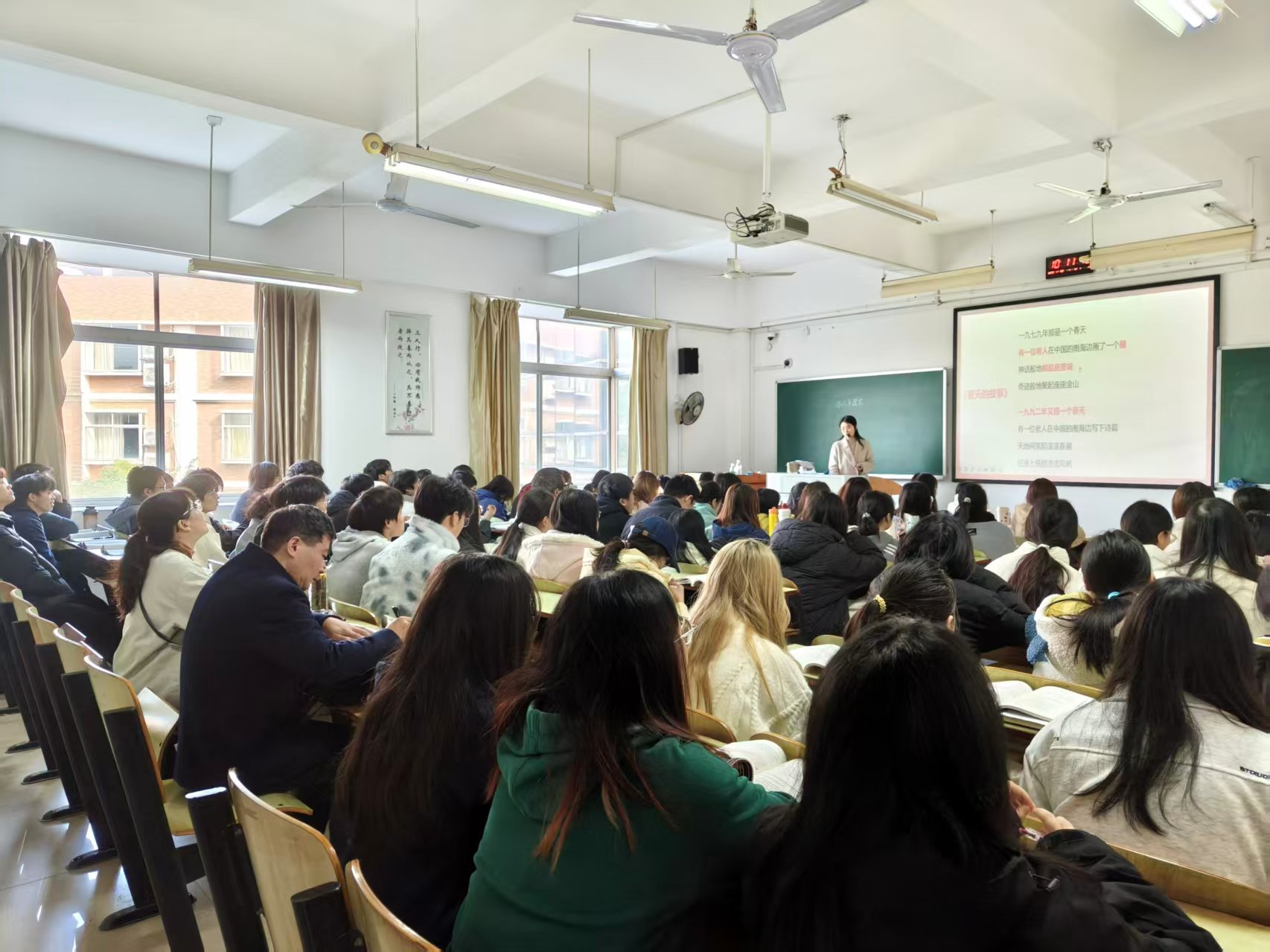为落实教育部及学校党委关于促进思政课教学质量提升的部署要求,11月20日上午,党委副书记、校长易兵深入教学一线,随机听取了ok138太阳集团李沙沙老师讲授的《毛泽东思想和中国特色社会主义理论体系概论》课程。他全程专注观察课堂教学组织、师生互动与整体效果,重点了解内容逻辑、理论深度与方法创新,并详细记录了教学亮点与改进建议。课后,他与授课教师亲切交流,并就如何进一步强化理论深度与学生思想实际的结合、如何利用数字化教学手段增强课堂吸引力等问题提出了具体建议。